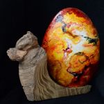 Pierre Dressée sur socle de bois, format de la pierre 12/17.