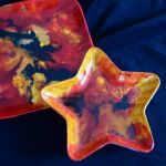 Collection d'assiettes et vide-poches aux couleurs chaudes pour les fêtes de fin d'année.
