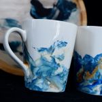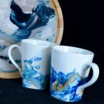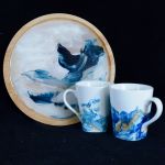 Ensemble de deux tasses peintes sur assiette en bambou, peinte et protégée de résine alimentaire.